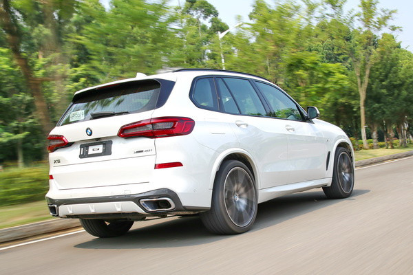 不弹射的情况下,宝马X5给你直接的动力感受其实并不突兀,你能感觉到强大的动力在拽着车飞速前进,真真切切地感受到强力的推背感,但同时也能感觉到它的车身实实在在地压在路面上,整台车显得很稳重,降低了你对速度的恐惧感。与此同时,来自采埃孚的8AT变速箱每次换挡的动作都很小,换挡过程中动力的衔接既快速且顺畅,加速的过程中整套动力体现出了良好的平顺性和高级感。