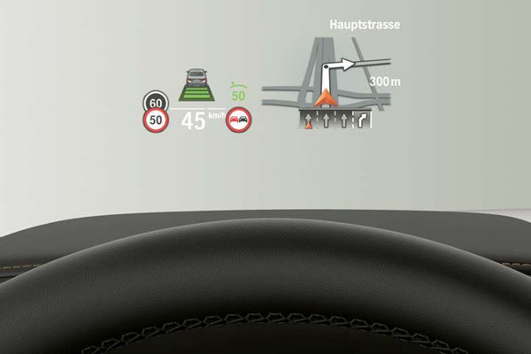 随着驾驶模式的不同,液晶仪表的样式和配色会有小幅变化,但是整体布局基本不会变。宝马做液晶仪表的思路独树一帜,整个液晶仪表可以操作的菜单仅有右侧一列,并且没有二级菜单,操作按键仅有方向盘左边转向拨杆上藏得很隐蔽的标着“BC”的小按钮。我们在宝马X5方向盘的右侧看到的菜单键,反而是控制抬头显示用的,宝马在这台车的HUD抬头显示中同样加入了丰富的行车信息,实时车速、实时转速、道路信息、自动巡航信息、导航信息、多媒体信息都可以在小小的抬头显示投影中找到,并且还可以进入二级菜单进行选歌、切歌等操作。宝马的思路很清晰,就是希望驾驶员可以将抬头显示作为驾驶时最主要的信息获取源,保证驾驶员可以获得驾驶时所需信息的同时,尽可能地减少驾驶员低头看仪表的时间。