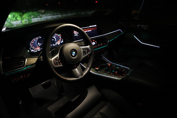 想要看到宝马X5内饰最具豪华感的一面,你需要等到夜幕降临,当全车的氛围灯亮起来时,整个车厢内的豪华感瞬间便有了质的提升。宝马X5共有12种颜色的氛围灯可选,连车顶的全景天窗内都藏着氛围灯。星空顶一向都是豪华车的标志,对于我这样长期生活在城市中的人来说,看到漫天繁星时,总是能被打动,总是会想起那句歌词“你有多久没有看到 满天的繁星 城市夜晚虚伪的光明 遮住你的眼睛”。