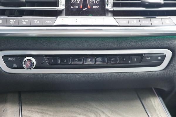 和以往的宝马车一样,宝马X5在空调控制区下方同样保留了一排数字按键,看起来这个区域好像平平无奇,甚至有些老气,但是当你用手去触摸时,你会发现这一排按键原来是热敏按键,只要轻轻触碰,中控屏中就会显示这个按键对应的快捷指令是什么,再用力按压,就能完成对应功能的选择。车主可以自定义每一个按键对应的快捷指令,比如将1设定为导航回家,将2设定为拨打家里的电话等等,实用性还是很好的。