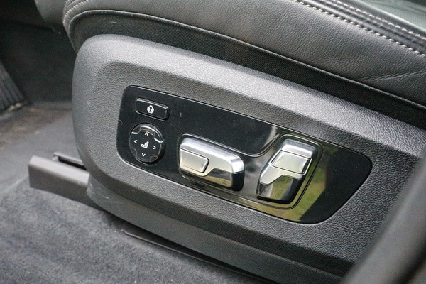 这个级别的车前排座椅的舒适性肯定都是没得挑的,宝马X5当然也不例外,前排座椅舒适性非常棒,即使长途驾驶,也不容易感到疲惫。我们拿到的这台顶配试驾车前排两张座椅都支持16向调节,除了常规的座椅前后、高低、坐垫靠背角度调节之外,它还带有肩部、腰部(4向)、腿托电动调节,不仅如此,这台试驾车还选装了前排座椅通风和按摩,而前排座椅加热则是标配。在试驾过程中我们还发现一个有趣的小细节,就是当你切换到运动模式时,主驾的肩部支撑会自动收紧,夹紧你的上背部,提醒你做好“战斗准备”。