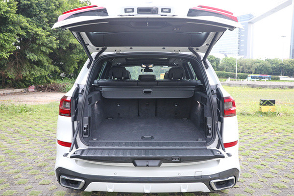 作为一台5座中大型SUV,宝马X5的尾箱空间肯定是足足的,常规尾箱容积和竞品奥迪Q7基本相同,比自家的中大型轿车宝马5系要大不少。宝马X5延续了经典的两段式尾门设计,尾门分为上下两段,上段可以单独开启,下段放下后可以当凳子坐。