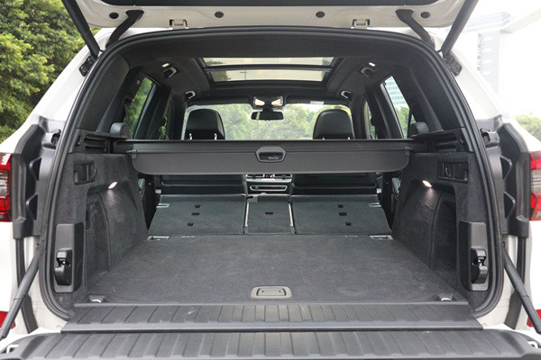 宝马X5的后排座椅支持4/2/4分割放倒,放倒后排座椅后地台有一定的倾斜度,但对搬运大件物品的便利性影响不大。真正对搬运重物或者大件物品便利性影响较大的反而是分段式的尾门,因为下段尾门增加了你与尾箱之间的距离,也就是增加了搬运物品的距离,所以你需要花更多的力气,才能把东西放进尾箱里。