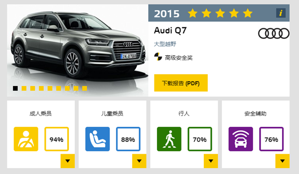 单看IIHS的评级结果,我们没法在同级车中给X5一个排名。E-NCAP的百分比机制正好弥补了这一点。列出BBA竞品车型,三台车评级都是五星,得分是有高低区隔的。如果对成人和儿童保护的百分比算一个均值,奥迪Q7最高、奔驰GLE次之、宝马X5最末。X5的劣势,在偏置碰撞,驾驶员大腿部位保护得了弱,拉低了得分。