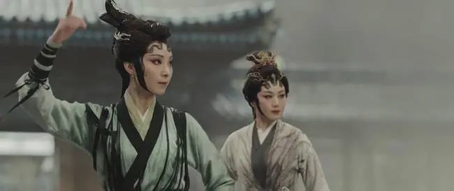 无论是吊威亚的戏份,还是刀剑打戏,动作流畅自然,毫无拖泥带水的节奏,这一点又不同于戏曲的唱念做打般的写意,影版显然在视觉体验上略胜一筹,让人直呼爽快。