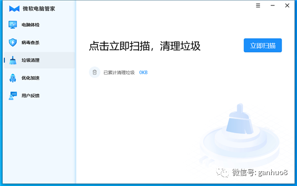 垃圾清理部分,主要清理电脑中的缓存、使用中产生的垃圾文件