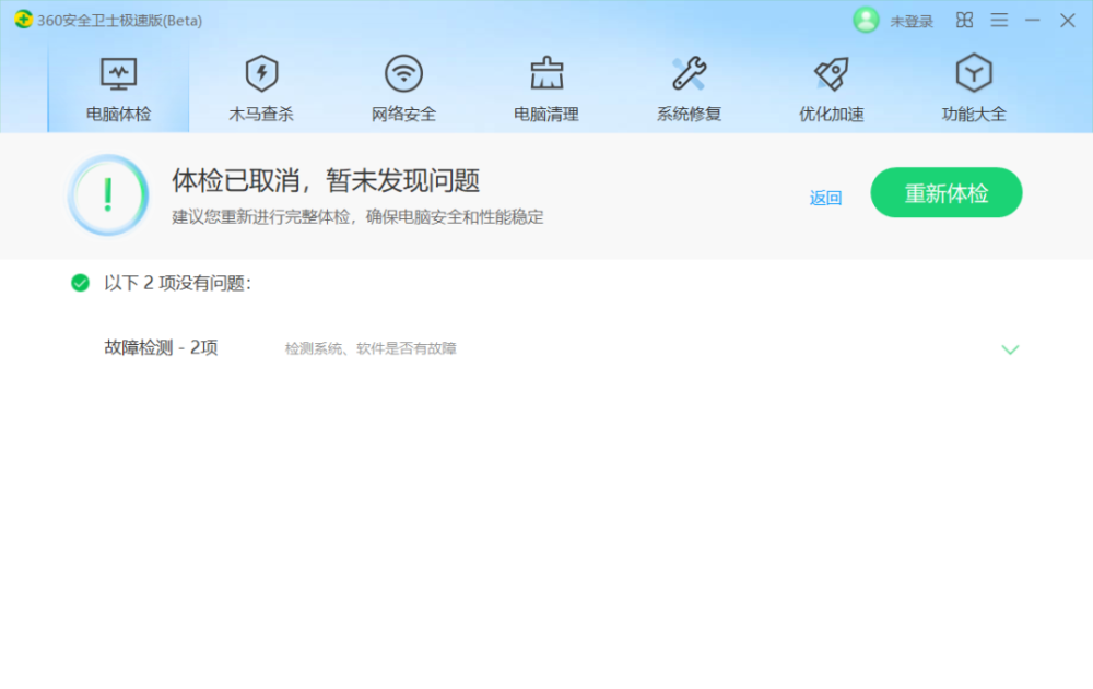 满分为100分:当体检没有发现任何问题的时候,提示满分,证明你的电脑非常健康。