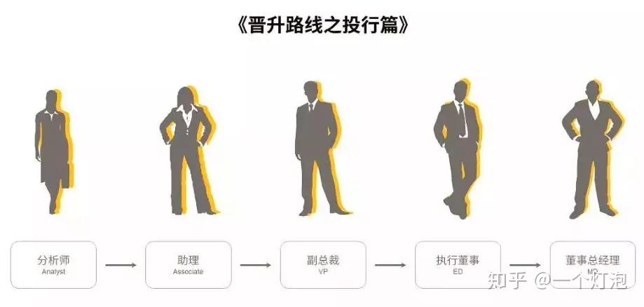 在基金圈,一级市场PE/VC基金最主流的高管晋升之路为:分析师(Analyst)?投资经理/助理(Associate)?副总裁(Vice President)?董事(Director)?董事总经理(Managing Director)?合伙人(Partner)?管理合伙人 (Managing Partner)