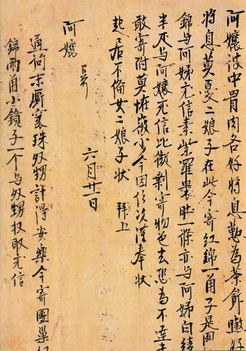 这封信的内容,大致写些茶饭琐事,从落款看,这是一封自称“二娘子”的年轻姑娘写给母亲的家书,信中的“阿孃”即其母。“孃”、“娘”二字在唐代的不同用法于此可见一斑。此外,日语中,“孃”、“娘”二字至今仍分工明确,“孃”指母亲,“娘”指年轻女子。