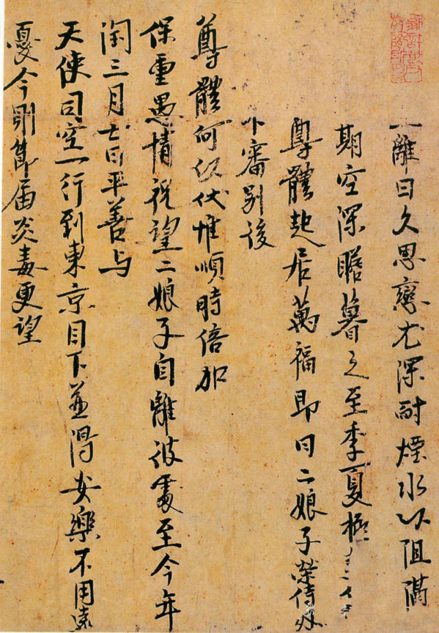 释文:二娘子自离彼处,至今年闰三月七日平善,与天使司空一行到东京。目下并得安乐,不用远忧。今则节届炎毒,更望阿孃、彼中骨肉各好将息,勤为茶饭,□好将息,莫忧二娘子在此。今寄红锦一角子,是团锦,与阿姊充信;素紫罗裹肚一条,亦与阿姊;白绫半匹,与阿孃充信。比拟剩寄物色去,恐为不达,未敢寄附,莫怪微少。今因信次,谨奉状。起居不备。女二娘子状。拜上。六月廿一日。