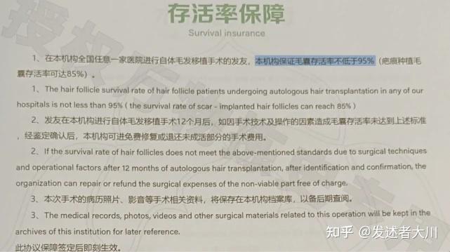 相信大家在面诊的时候,植发机构都会宣保存活率不低于9X%,如果没达到就怎样怎样,乍一听来,觉得这个植发机构很有保障,是个值得信赖的机构,就迷迷糊糊把钱交了。