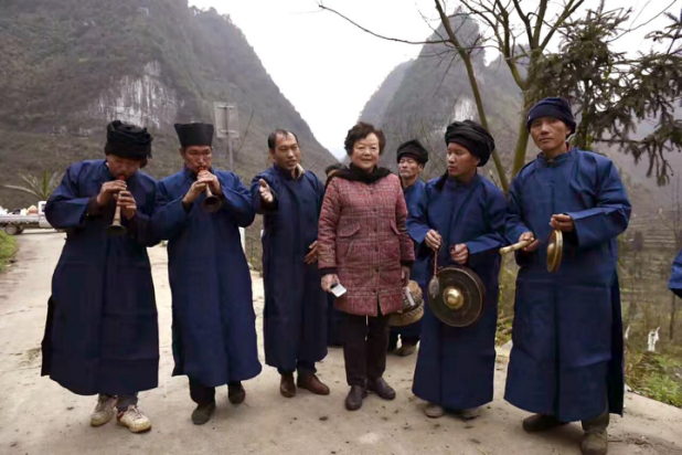2016年,余未人在麻山会见苗族《亚鲁王》乐手,他们以演奏相迎