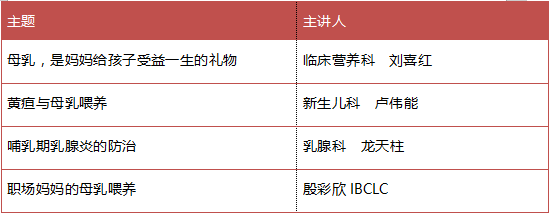 邀请广州市妇女儿童医疗中心临床营养科主任、母乳库负责人刘喜红博士,新生儿科卢伟能主任医师,护理部副主任、国际认证泌乳顾问殷彩欣,乳腺科龙天柱医生共同打造母乳喂养精品讲堂。