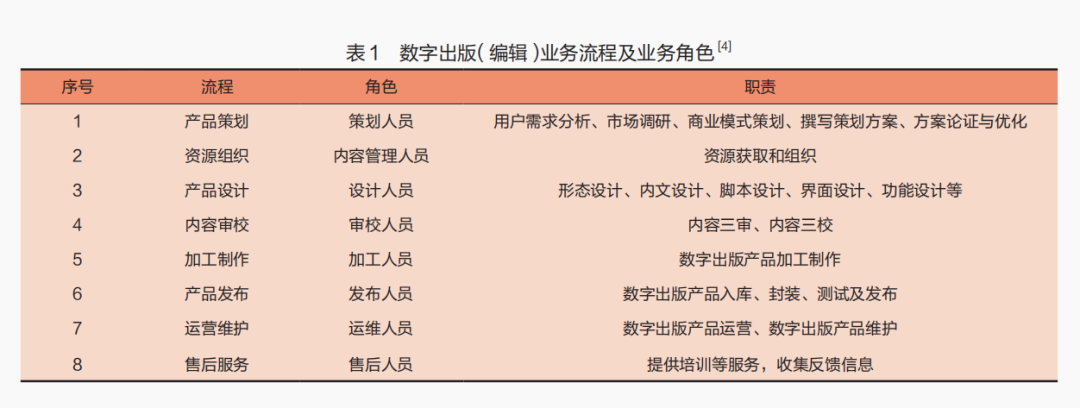 (1)选题策划环节——除了基于传统媒介的策划选题以及组稿工作之外,数字出版编辑还基于互联网发现选题,利用数字技术手段组稿和约稿;同时,选题策划所指向的结果不仅仅局限于纸质图书,还包括电子书、数据库、增强现实出版物、虚拟现实出版物、出版大数据等基于数字技术的产品。
