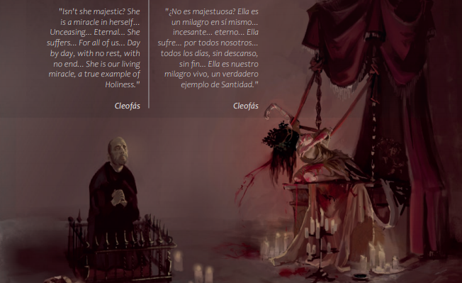 除此之外,沦为教会工具人的“永痛仕女”,自杀于橄榄枯萎之地的恩格拉夏,以及被囚禁灵魂制作念珠的索利达等人皆为女性,无一例外的讽刺了西班牙宗教裁判所以“猎巫”为口号对女性长达数世纪的迫害。