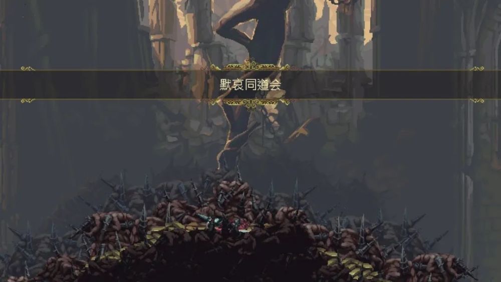 默哀同道会并不认可扭曲圣父,他们只信奉最高意志。这样的态度最终引来杀身之祸,全部的成员皆被神母会麾下的圣膏军屠杀,成山的尸体也被带上尖角兜鍪扔在了一起,这就是游戏中的第一个场景。