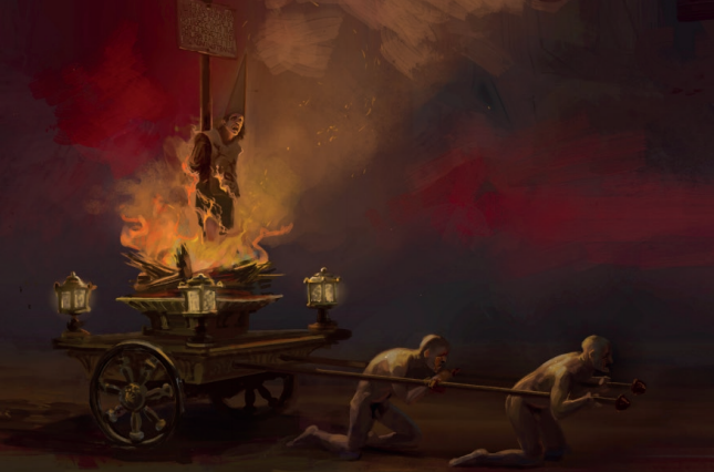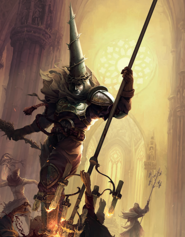 主角的造型也非常有来头,其最为亮眼的兜鍪在历史上也有原型。在西班牙宗教裁判所的文化中,带上此帽的人是身负重罪的忏悔者,以尖角兜帽昭示罪行。