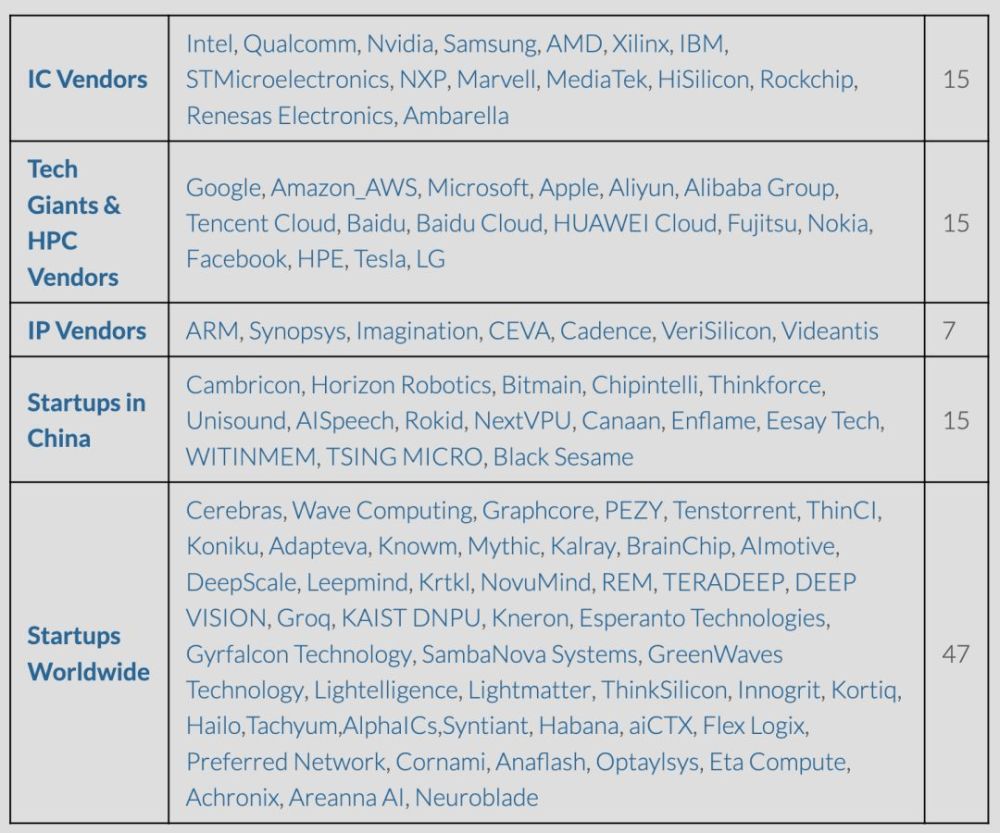 出处:AI Chip List (https://basicmi.github.io/AI-Chip/)