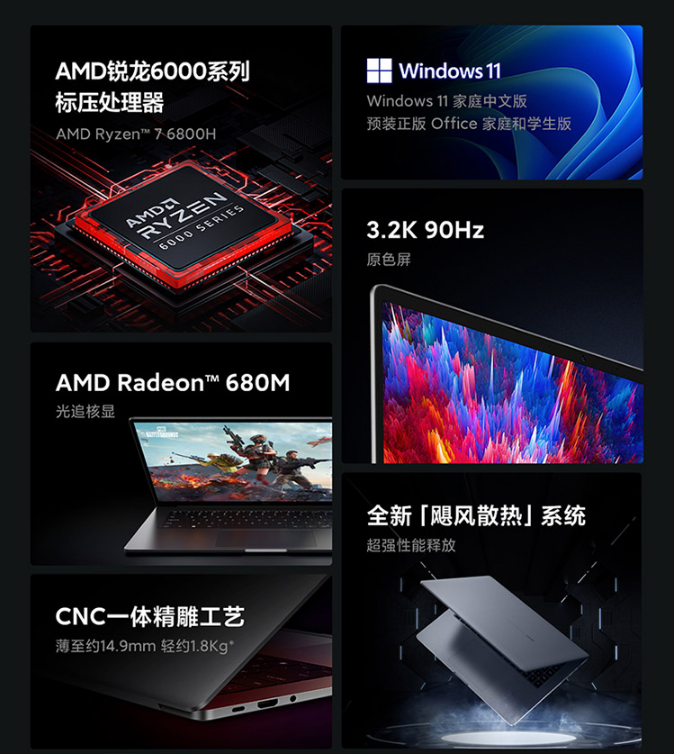 RedmiBook Pro15 2022 锐龙版搭载了AMD锐龙R7-6800H处理器,性能方面,无需担心,作为目前AMD在笔记本领域的旗舰级芯片之一,足以满足大多数用户的需求,并且R7-6800H还配备了Radeon 680M核显,这颗核显的性能如果配上高频内存,游戏性能还是可以期待的,而红米这次为它搭载了LPRRD5 6400MHz的内存,无疑是合格的。