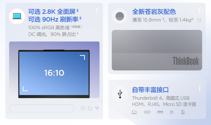 屏幕方面,联想ThinkBook 14+配备了一块2880*1800分辨率、90Hz刷新率的100%sRGB色域IPS屏,视觉观感优秀,如果你对屏幕素质有较高要求,这款电脑或许是个不错的选择。