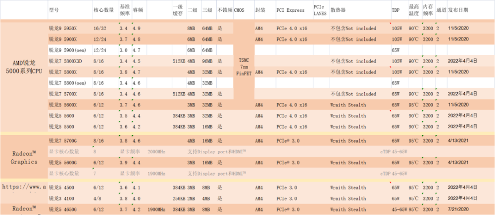 目前在售CPU详细参数:数据来源AMD和INTEL官网