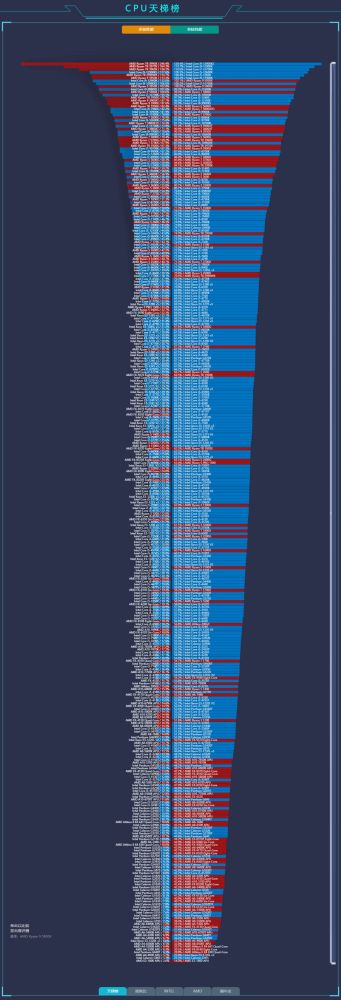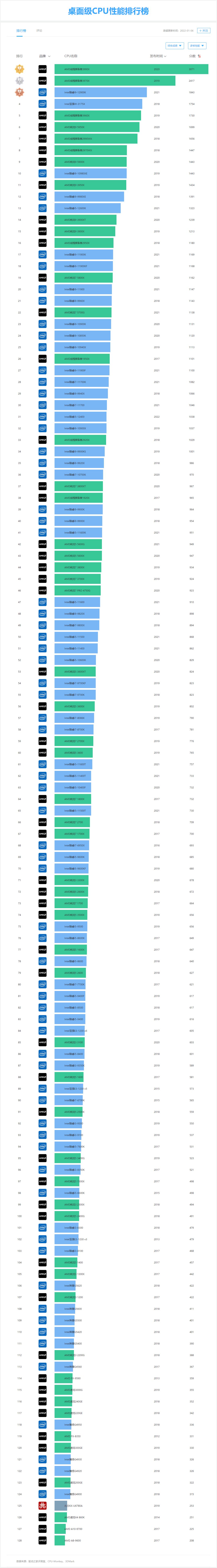 本次天梯图更新型号有AMD最新发布的R3 4100、R5 4500、R5 5500、R5 5600、R7 5800X3D和INTEL第12代全系列G6900、G7400、I3 12100、I3 12100F、I5 12400、I5 12400F、I5 12600K、I5 12600KF、I7 12700、I7 12700F、I7 12700K、I7 12700KF、I9 12900、I9 12900F、I9 12900K、I9 12900KF、I9 12900KS。