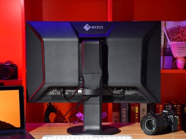 EIZO CG2700X的背面设计了大面积的金属网板,金属网板有散热孔,因此可以在长时间使用的时候保证有效的通风和散热。这个设计可以保证在没有风扇产生噪音的情况下,依然保持显示器的低温运转。