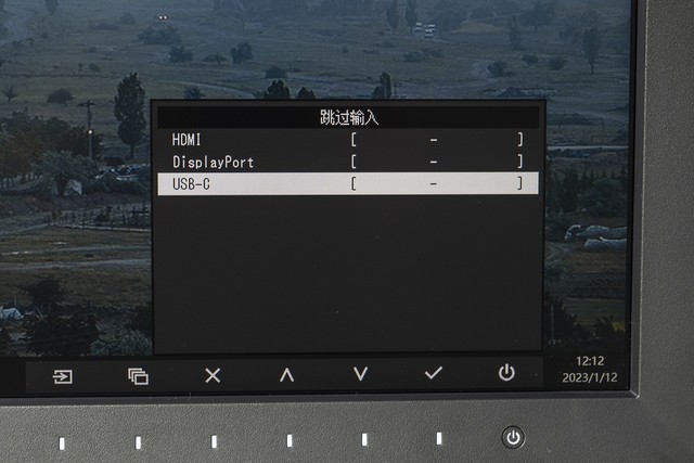 这里要说明一下,显示器默认是关闭“USB Type-C的单线缆连接”这个功能的,需要用户进入设置界面“≡”,选择“偏好设定”-“跳过输入”,将“USB-C”设置为“-”,这样就可以实现功能了。