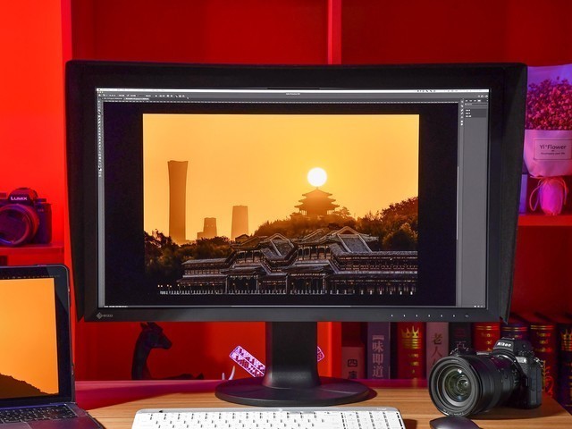 EIZO CG2700X使用遮光罩的样貌