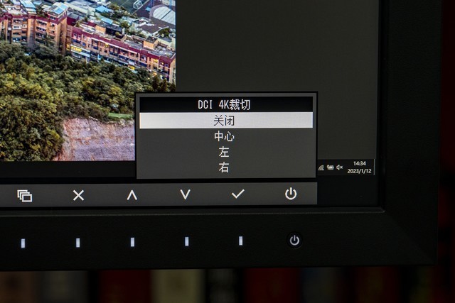 这个功能很好理解,就是将DCI-4K分辨率的画面内容,裁切其中3840×2160分辨率的部分显示出来。EIZO CG2700X预设了三个选项,用户可以具体选择裁切哪一部分的画面,比如只裁切左侧分辨率内容、只裁切右侧分辨率内容,或者左右均裁切一部分分辨率内容。