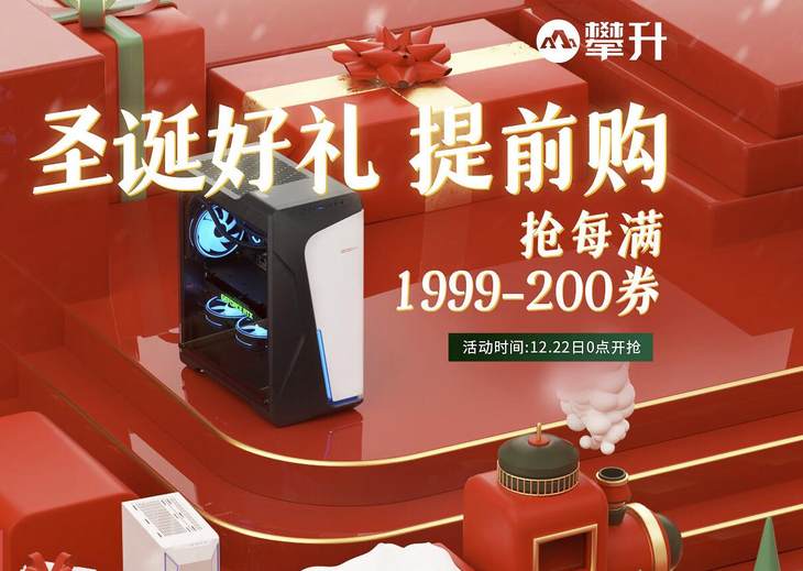 2022年的余额所剩不多了,随着双旦假期的来临,一年一度的年末购物高峰要来了。日前,国内知名的整机电商和高性能电脑制造商攀升在自家的DIY电脑旗舰店开启了“圣诞好礼提前购”活动。在本次活动期间,攀升提供了每满1999元减200元优惠券(封顶1000元)、每满999元减100元优惠券(封顶600元),并且还提供返50元现金红包、白条分期免息等多重福利。