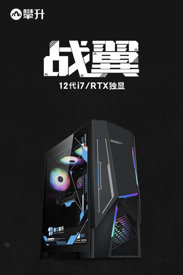 接下来的这款攀升战翼主机拥有i7 12700F处理器、B660M主板、RTX 3060Ti 8G电竞显卡、16G DDR4 3200MHz高频内存、512G PCIe 4.0的固态硬盘、四铜管风冷散热以及自带RGB灯效的J-ONE定制机箱。
