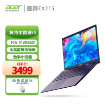 宏碁(Acer)墨舞EX215 15.6英寸轻薄笔记本电脑京东月销量500好评率98%无理由退换京东配送旗舰店¥3599购买