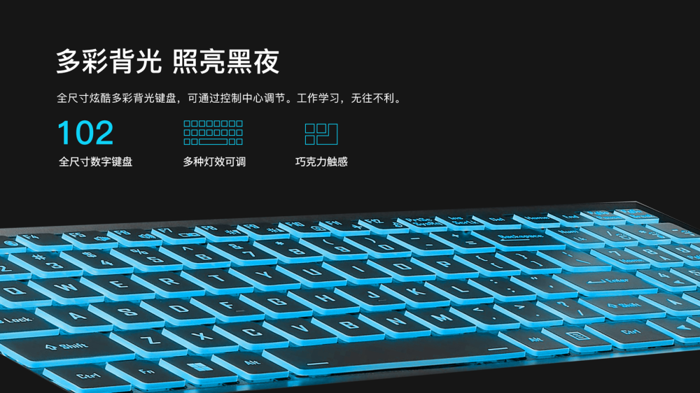 值得一提的是神舟还是很重视游戏体验的,神舟战神Z7- RA5还特别搭配了一款很好用的键盘。这个键盘有多种可调的灯效,同时还有102全尺寸数字键盘,对于笔记本键盘来说能使用数字按键是非常方便的。键盘的灯光效果很棒,对于喜欢RGB光源的用户来说这个键盘可能会很对胃口。