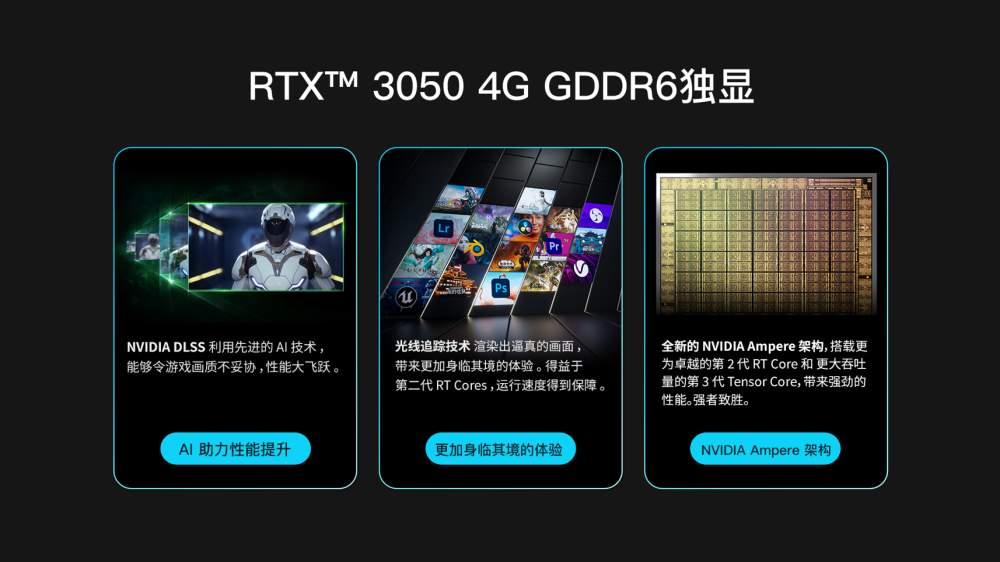 当然了,现在这个阶段对于购买笔记本的朋友来说,显卡的配置也非常重要。神舟战神Z7-RA5选择了RTX3050 4G,这款显卡采用NVIDIA第二代RTX架构,支持光追技术也能为图像渲染软件提供强大的算力。用这个笔记本玩游戏可以给我们带来更加极致的体验,对于一些想玩大型游戏,又不知道入门笔记本配置到底为什么样的朋友来说,这款电脑非常适合我们。
