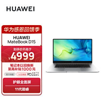 【京东自营】华为笔记本电脑MateBook D 15 2022款 15.6英寸 11代酷睿 i5 1京东月销量3000好评率95%无理由退换京东配送官方店¥4699购买