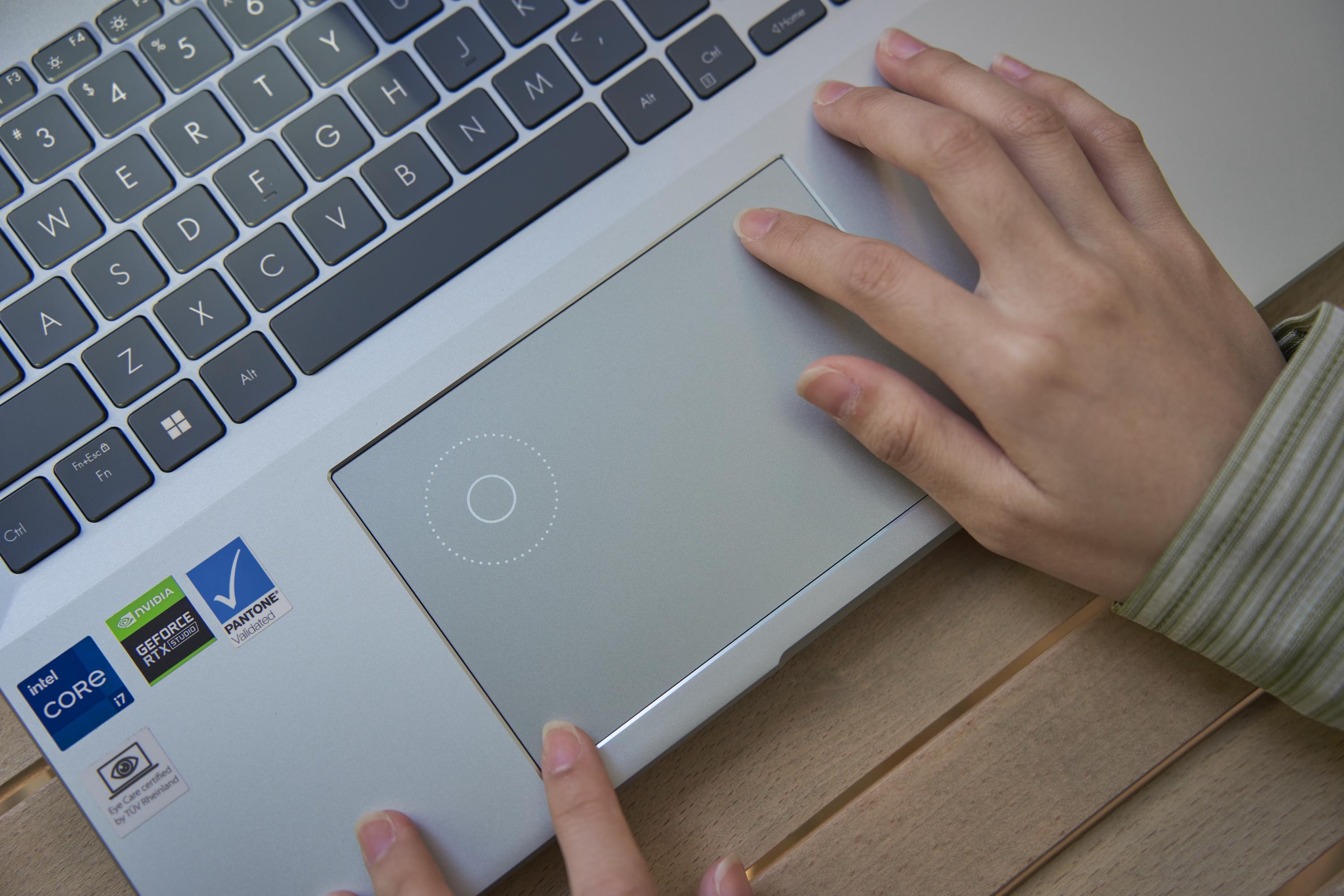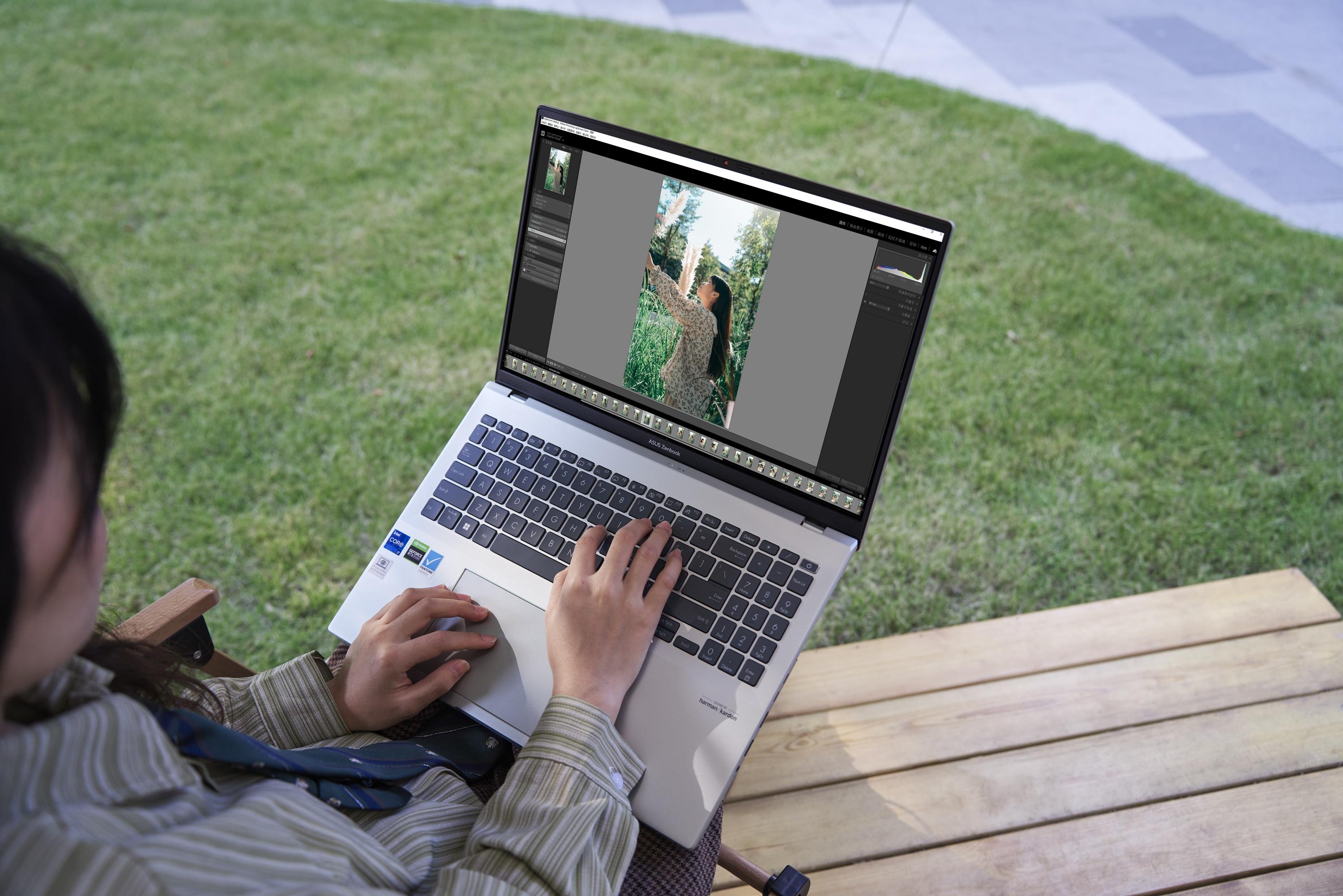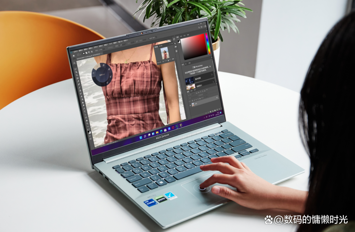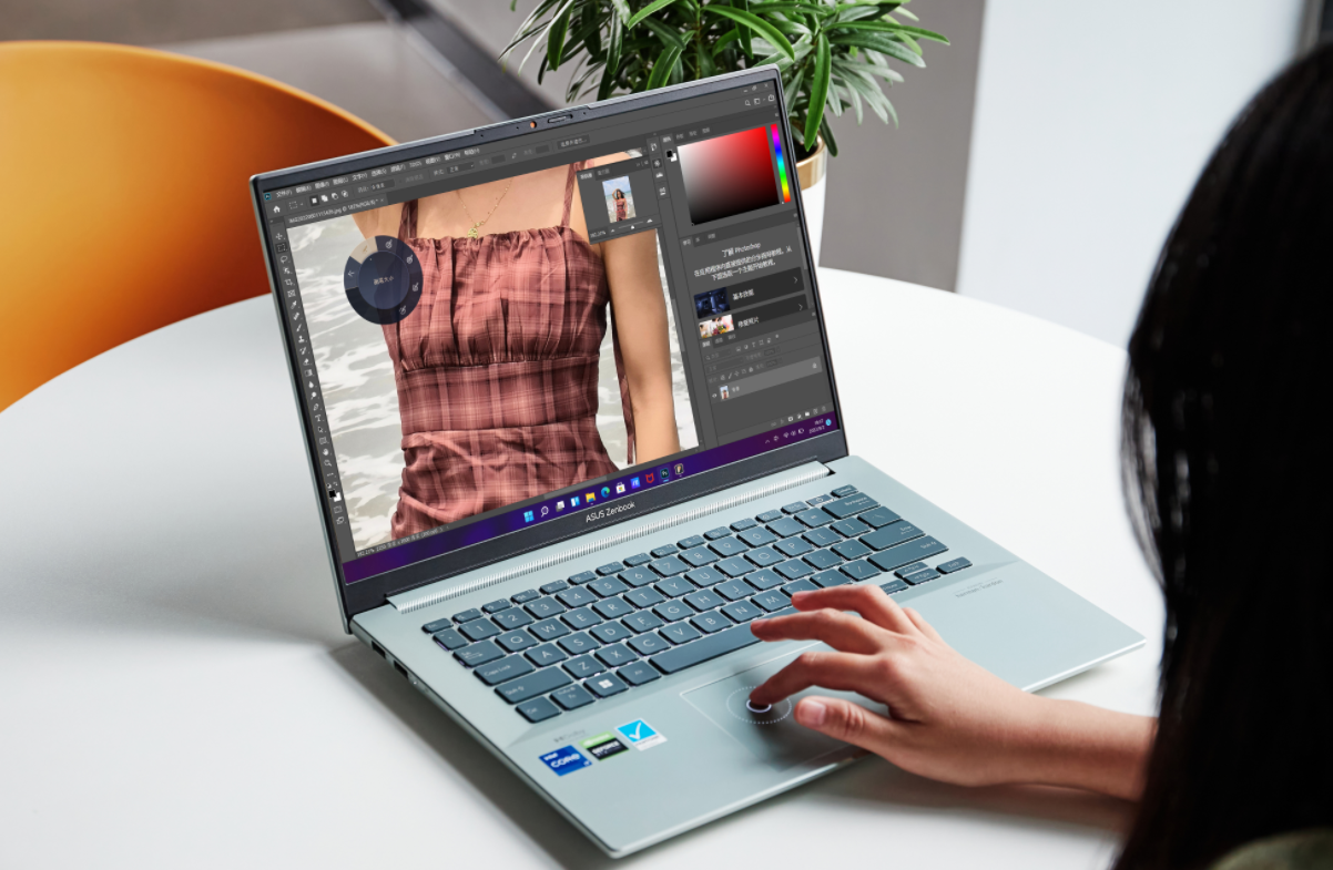 值得一提的是,为了提高操作效率,灵耀Pro16 2022还在触控屏上内置了华硕虚拟按钮并与Adobe系列全家桶进行了深度的适配来提高创作效率。比如在PS上,在这个虚拟按钮的帮助下,可以精准快速调节参数、笔刷,不需要频繁操控鼠标,实用性更强。