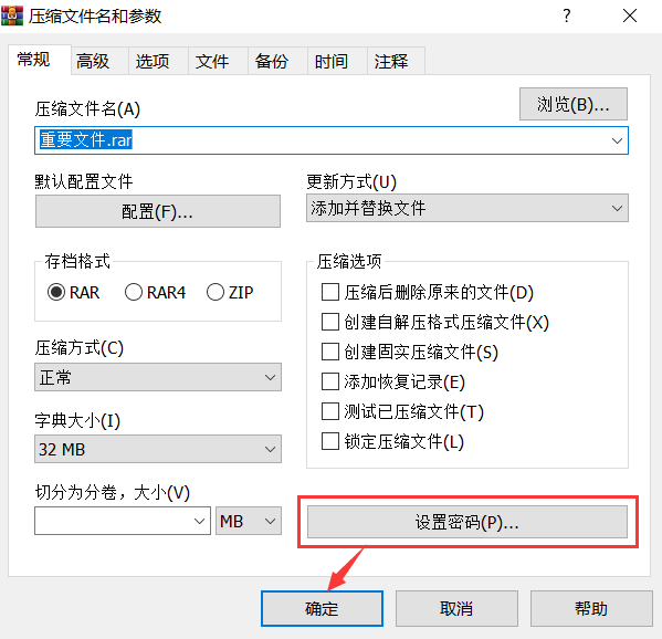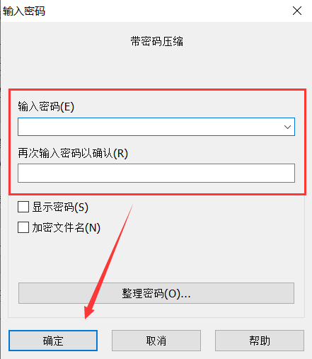 3.在弹出的窗口输入你要设置的密码,并再次输入密码以确认,最后选择“确定”。设置好后,你就会看到一个加密并压缩的文件夹,可以双击打开,把压缩包解压出来就可以了。