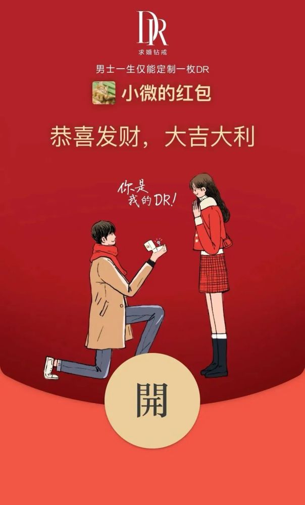 微信搜一搜「DR钻戒」,领取“一生只送一人”的DR钻戒 限定版求婚主题红包封面。