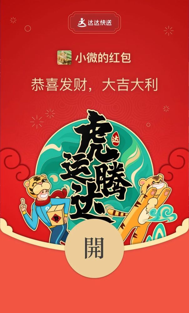 微信搜一搜「达达快送」,有机会领取虎运腾达限定款红包封面。