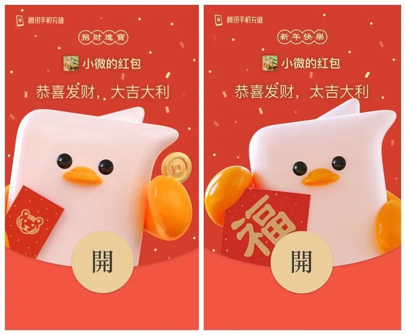 微信搜一搜「腾讯手机充值」,即可领取【冲鸭】红包封面,数量有限。