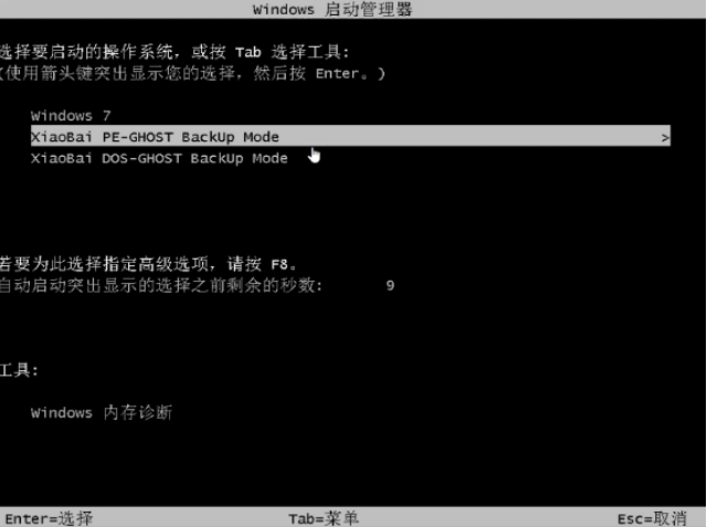 6.下载pe系统后,计算机将自动重新启动。出现如下图所示的界面,选择“ DOS-GHOST”选项,然后按Enter执行系统备份。