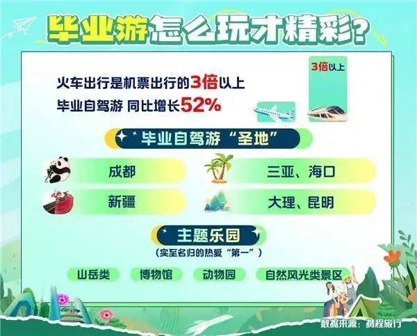 随着毕业季的来临,毕业旅行被年轻人提上日程。携程数据显示,6月9日至8月底,高中、大学毕业生的旅游订单逐渐增多,同比去年增长近1倍。截至目前,来自大学毕业生的国内游订单量比高中毕业生多276%,大学生出境游订单量比高中生多536%。拥有丰富文旅资源和完善旅游服务配套设施的昆明,成为毕业自驾游热门目的地。【点击查看详情】