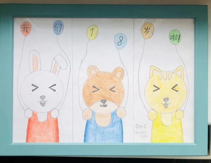 豆豆和露露为三胞胎亲手绘制了纪念版画