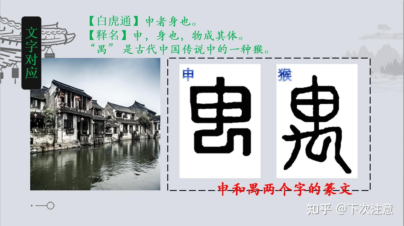 申时代表一年当中的孟秋之月,节气为立秋和处暑。孟秋之月,正是万物养育下一代的时候,草木结果,禽兽育雏。申时在夏秋之间,对应后天八卦之坤位,《说卦传》云:“坤也者,地也,万物皆致养焉,故曰致役乎坤。”一般而言,仲秋之月是果实的成熟期,而孟秋之月时,大部分果实还不太成熟,这时候,淘气的猴子已经迫不急待地活跃在林木间,干起了偷桃摘李的勾当。另外,哺育后代,唯猴子最象人类。故把猴与申时对应起来。