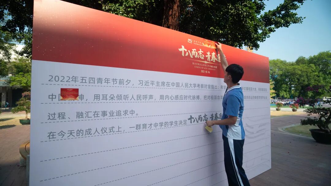 和风煦煦,晴空万里。5月4日下午4时,育才中学高三年级在大操场隆重举行了以“十八而志,青春逐梦”为主题的2022届高三成人礼仪式。值此五四青年节,也是五四运动第103周年纪念日,我们相聚在育才校园,共同迎接与见证这一神圣而庄严的时刻。