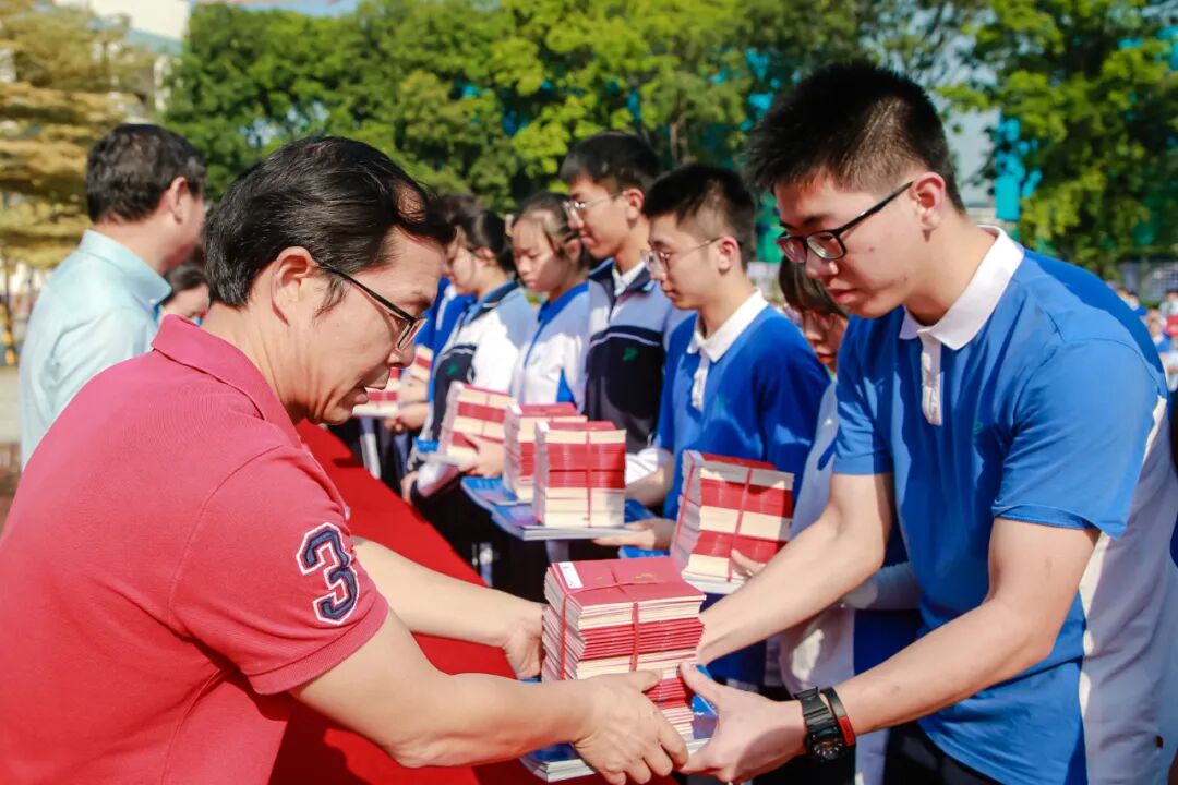 隆重的成人仪式上,学校还为每一位高三同学准备了一张成人纪念证书、一本《中华人民共和国宪法》,作为成人礼物送给大家,并由校领导为各班同学颁发礼物。