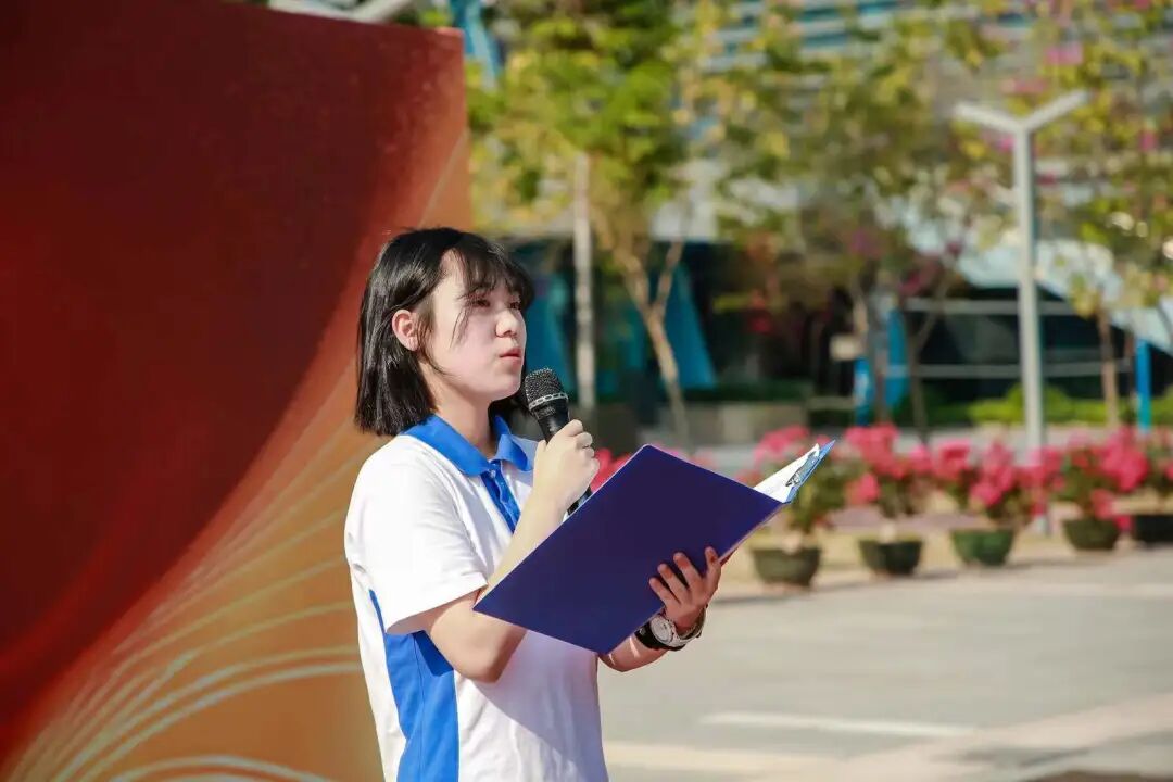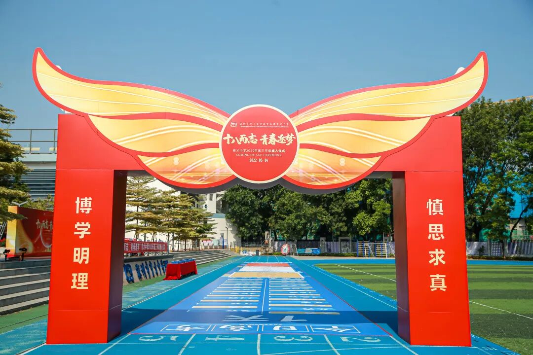 成人礼的第一项是庄重的升旗仪式。红旗飘飘,歌声嘹亮,奏唱祖国繁荣富强的荣光;南山葱郁,木棉绽放,唤起母校悉心培养的恩情。