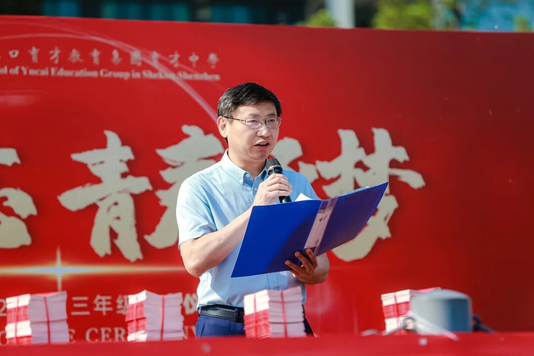 在仪式上,育才中学姚晓岚校长向高三学子致以真切的勉励和期盼,勉励全体高三学子以奋斗与担当的姿态承担责任与使命。