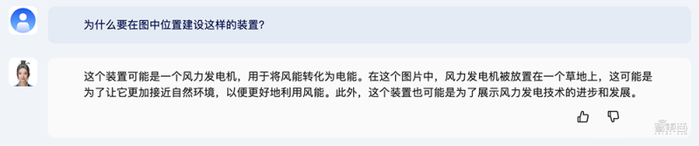 接着追问“为什么要在图中位置建设这样的装置”,它马上给出回答:“为了让它更加接近自然环境,以便更好地利用风能。”